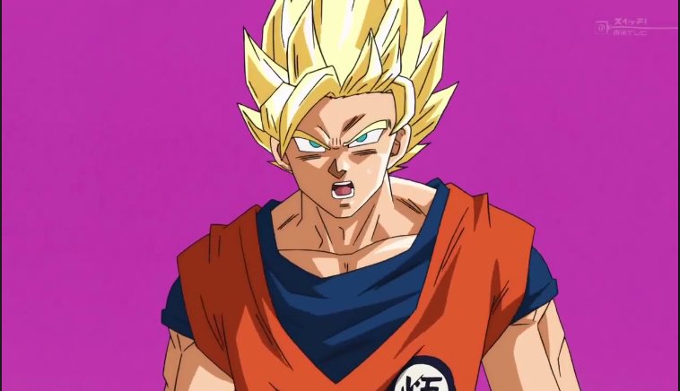 Goku wonders if Beerus is as strong as he claims, and challenges him to a fight. King Kai does everything to stop the fight, but Beerus is interested anyway. As he has never heard such a thing before, even though he has lived for hundreds of millions of years. Goku becomes a Super Saiyan, and confidently asks Beerus if he sould not be powering down to avoid hurting the god.